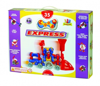 Набор предназначен для детей от 3 до 6 лет.Набор включает 31 деталь, дымоход, 1 пару колес большого размера с встроенными деталями ZOOB, 3 пары колес стандартного размера с встроенными деталями ZOOB, 13 двухсторонних карточек-инструкций с 28 моделями.