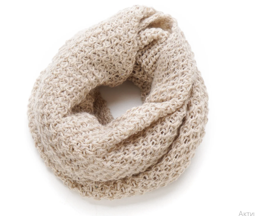 Итальянская пряжа с пайетками особенно прекрасна вечером в свете городских огней. Снуд отличное дополнение к представленным моделям шапок. Выполнен из фантазийного переплетения, по краю "репс" (держит форму)