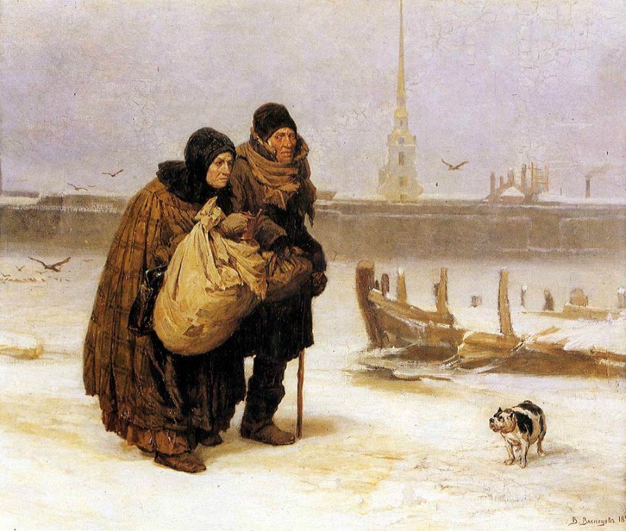 Особый успех выпал на долю картины "С квартиры на квартиру", над которой художник работал с 1875 года. Судьба бедных, одиноких стариков, выброшенных на улицу в холодный морозный день, ищущих пристанища, взволновала художника. Глубокой печалью веет от картины, повествующей о бесприютной старости, о трагедии никому не нужных людей. "Я думаю, - писал Стасов, - каждый из нас таких встречал. Что за бедные люди, что за печальная природа человеческая!.. Прекрасная картина!"