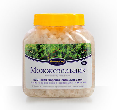 Состав: Соль морская кристаллическая из соляных озер Сакского залива Западного Крыма (акватория курорта Саки), натуральное эфирное масло можжевельника, продукт не содержит органических и неорганических добавок.
